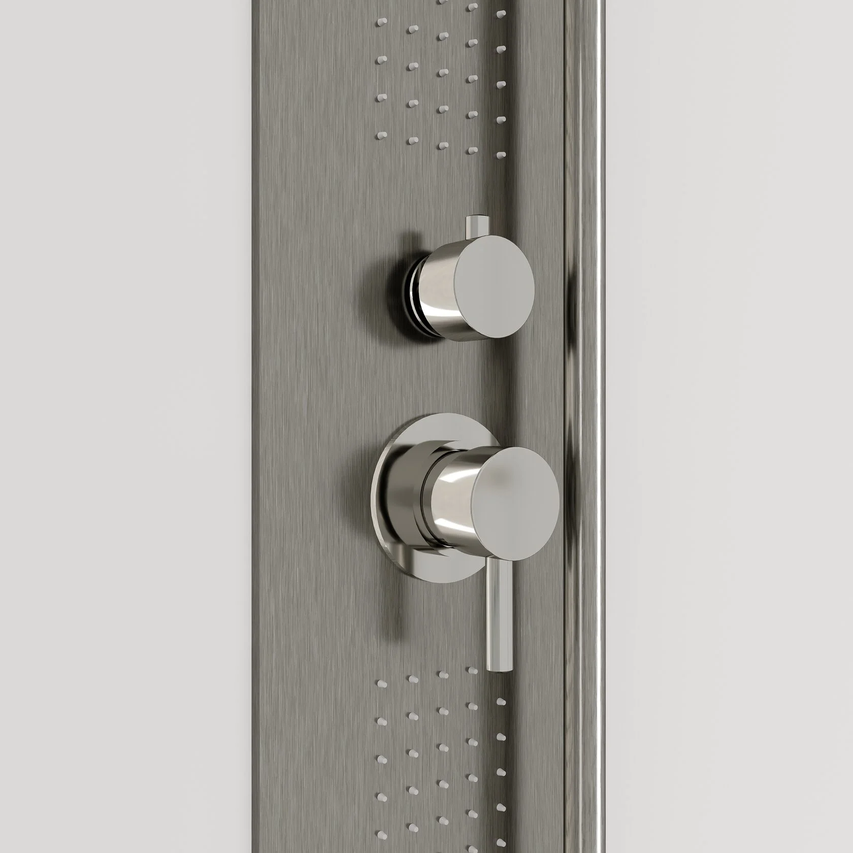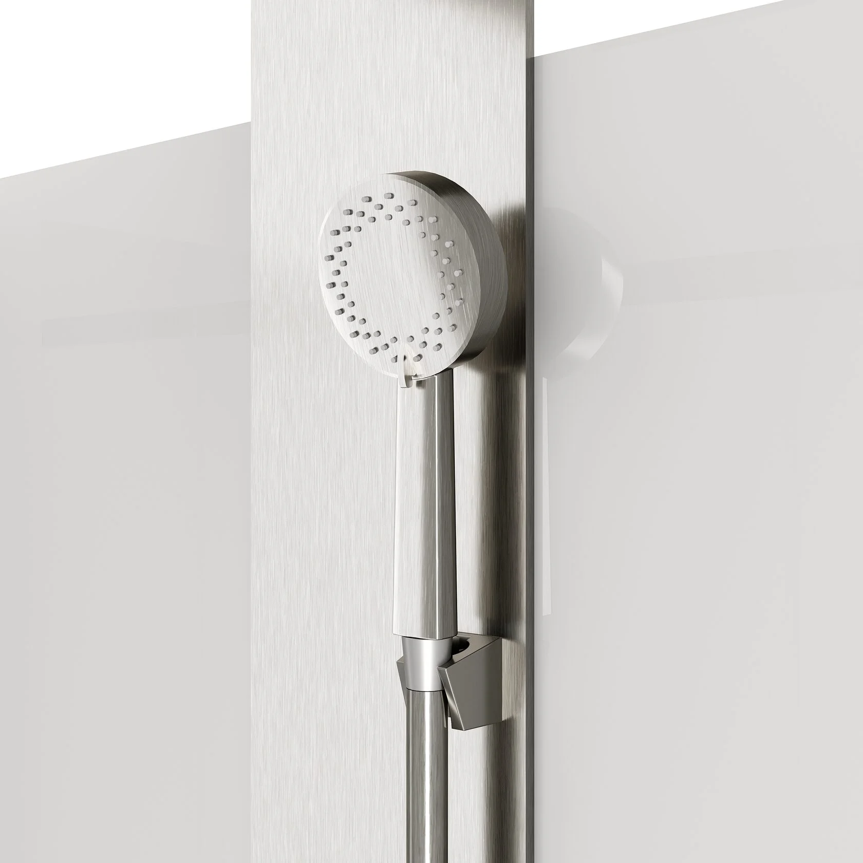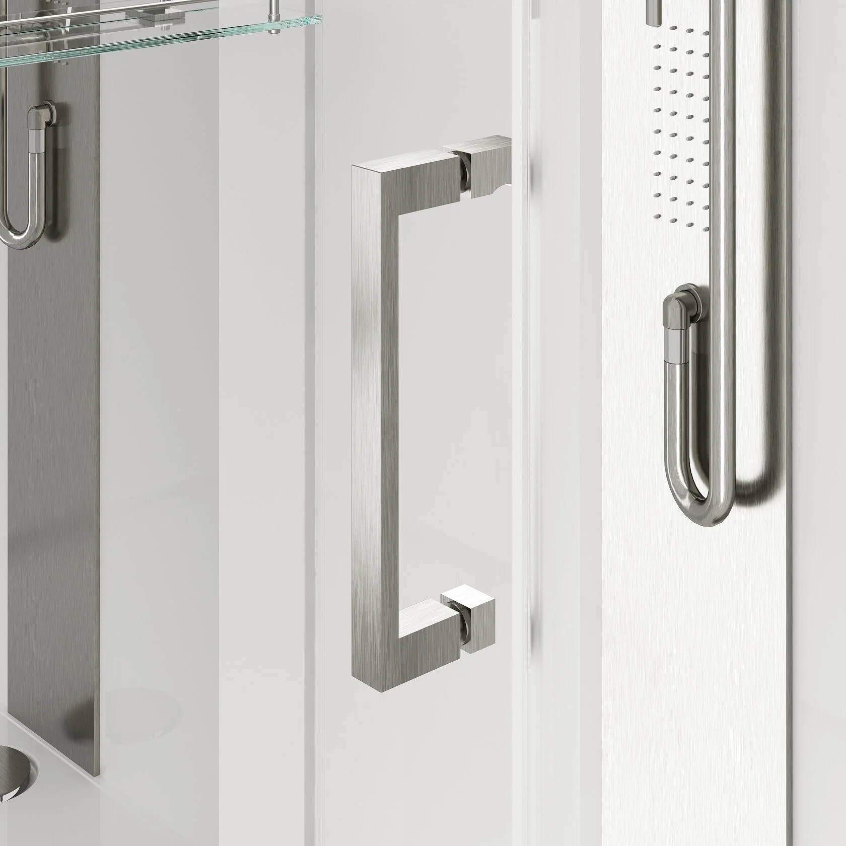 Душевая кабина Black & White G8708N — гармоничное слияние современного стиля и продуманной функциональности, где профиль цвета брашированный никель и прозрачное стекло создают атмосферу лёгкости и визуальной свободы, а встроенное зеркало и открытый верх добавляют удобства и современного акцента.
