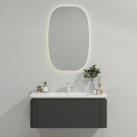 Тумба с раковиной Black & White U935.800 создана для тех, кто ценит современный дизайн и функциональность. Подвесная конструкция придаёт ванной лёгкость и визуально увеличивает пространство. Раковина из искусственного камня Corian гармонично интегрирована в столешницу и отличается прочностью и простотой ухода. Один вместительный выдвижной ящик с системой UniHopper и доводчиками позволяет удобно хранить косметику и аксессуары. Дополнительно тумба оснащена контурной диодной подсветкой, которая автоматически включается при приближении к мебели, создавая уютную атмосферу.