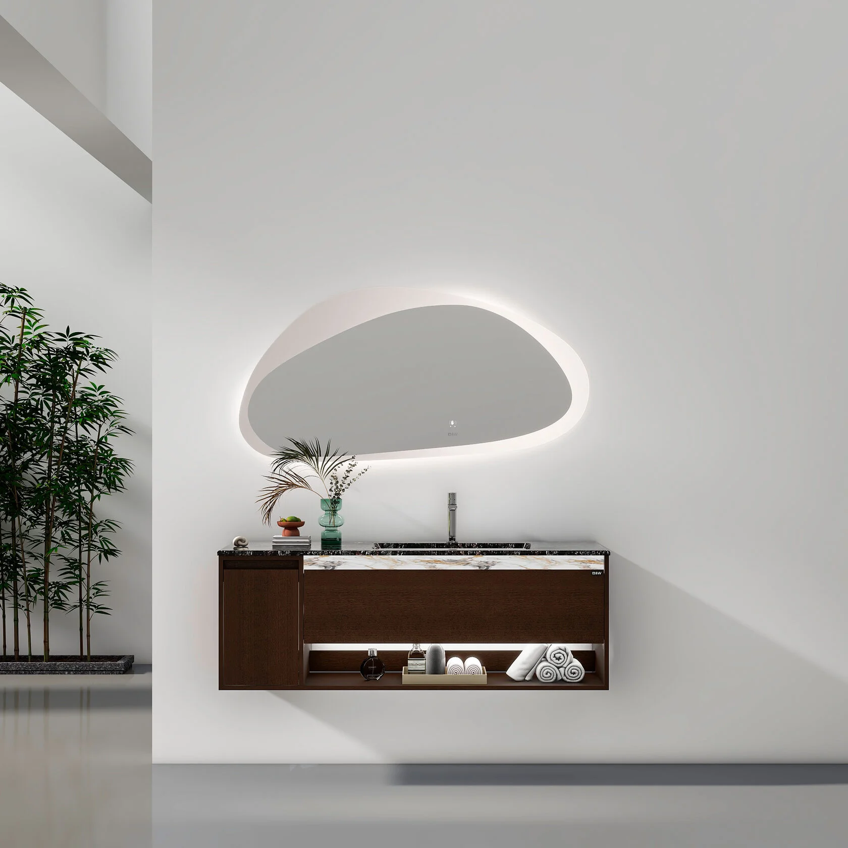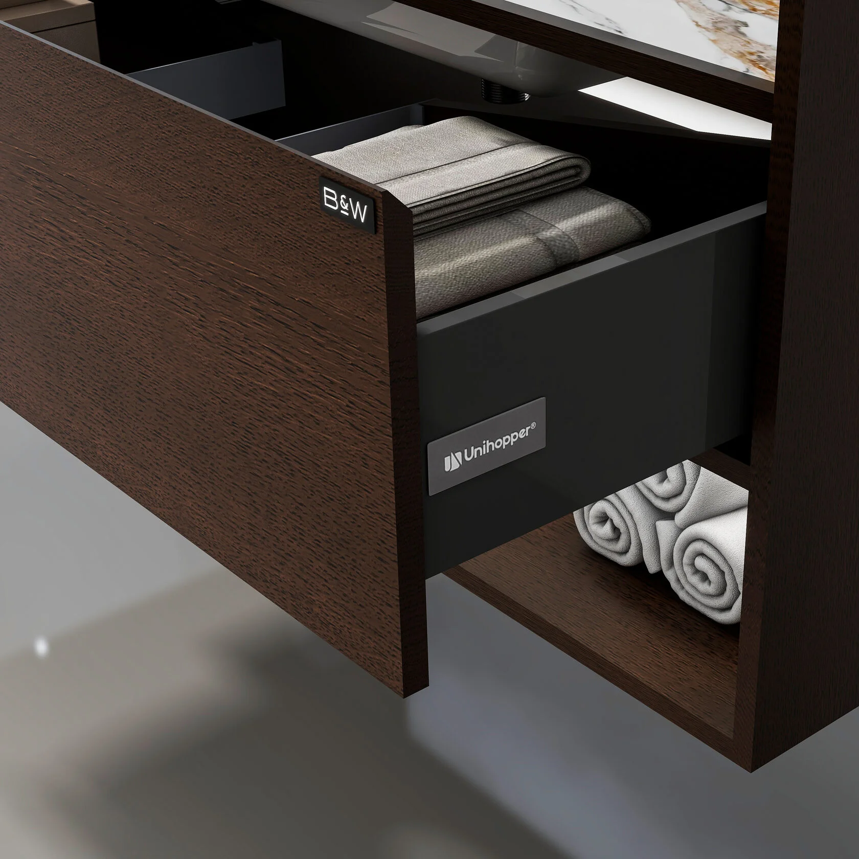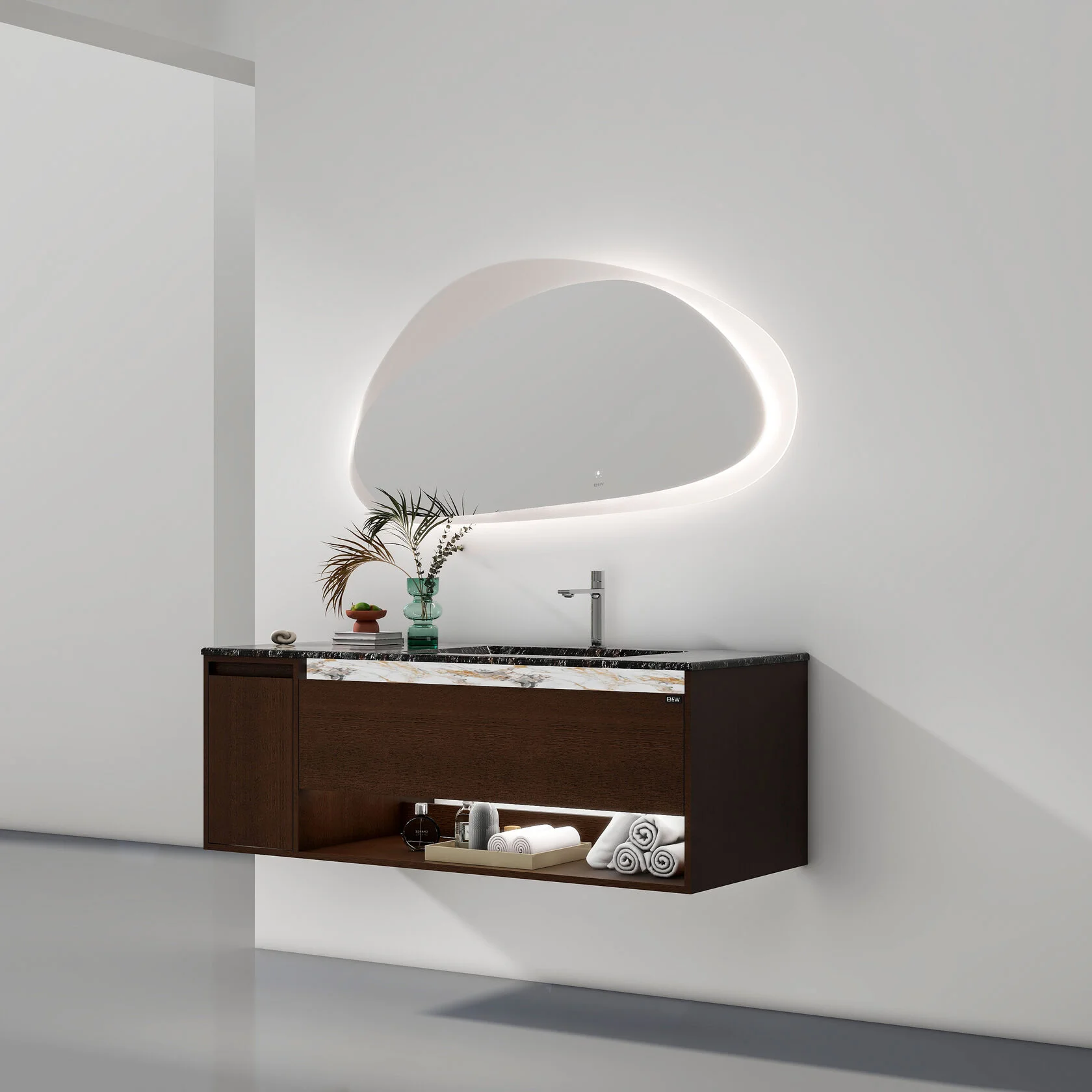 Тумба с раковиной Black & White U970.1400 — это стильное и функциональное решение для ванной комнаты, в котором практичность сочетается с современным дизайном. Элегантное сочетание фасадов в цвете американский орех и продуманной компоновки делает модель эффектным акцентом интерьера, а вместительная тумба с удобной раковиной создаёт комфортную зону для ежедневных гигиенических процедур.